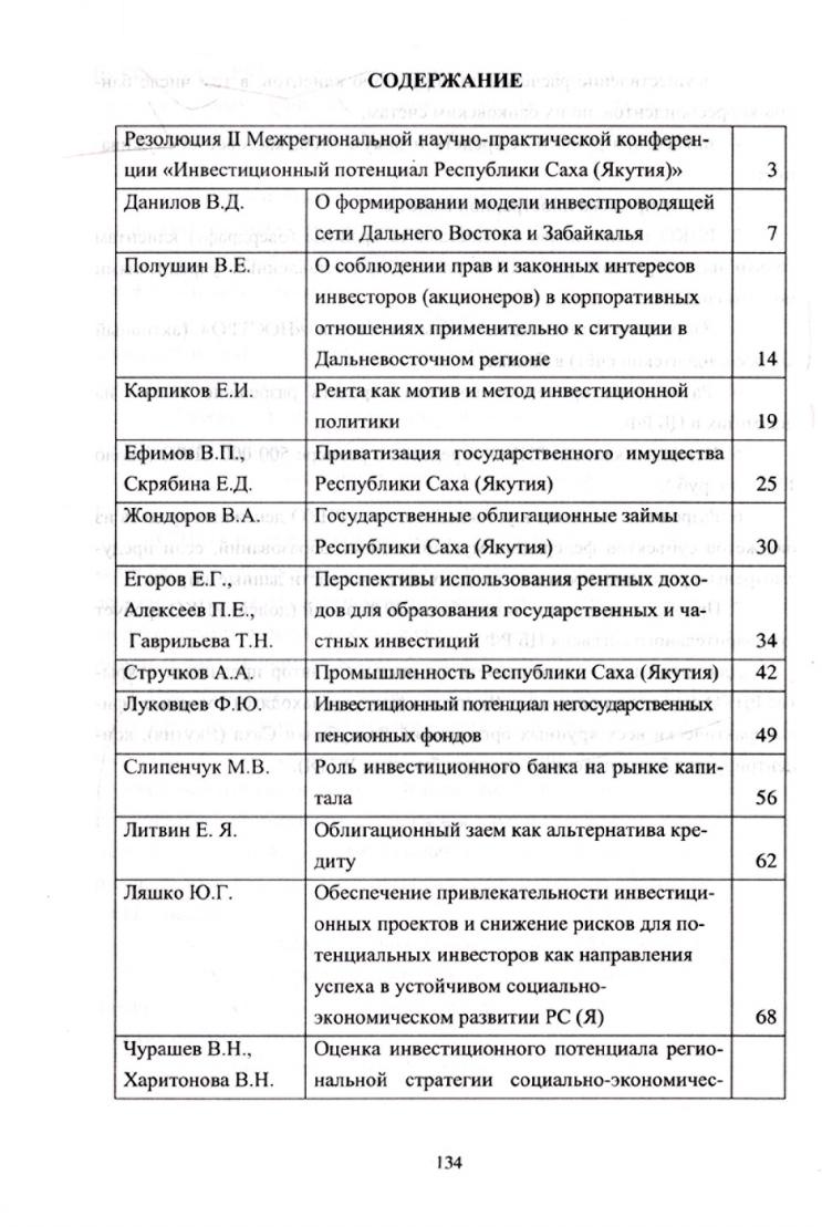 Инвестиционный потенциал Республики Саха (Якутия) : материалы II межрегиональной научно-практической конференции, г. Якутск, 5-8 июня 2003 г. / [редколлегия: Е. Н. Федорова, Т. Н. Гаврильева]. - Якутск : Издательство СО РАН, Якутский филиал, 2003. - 136 с.