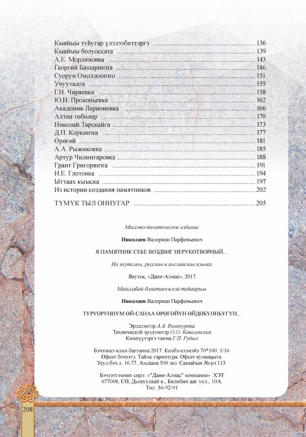 Туруоруннум өй-санаа өрөгөйүн өйдөбүнньүгүн... = Я памятник себе воздвиг нерукотворный... = A monument I've raised not built with hands... / [В. П. Николаев ; англ. тылга Т. Ф. Семенова тылбаастаата]. - Дьокуускай : Компания "Дани-Алмас", 2017. - 208 с. : ил., портр. ).