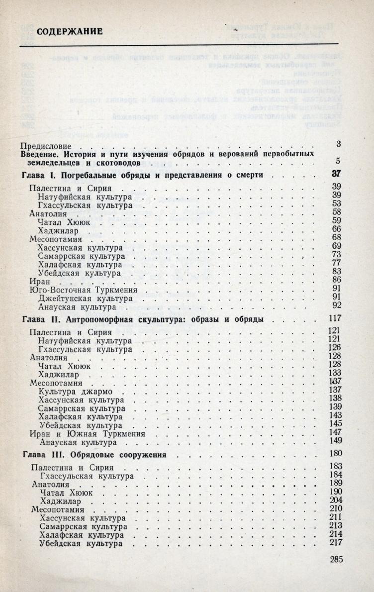 На основе материальных остатков обрядовой практики, первобытных земледельцев Ближнего и Среднего Востока, данных более поздних письменных памятников и этнографических сведений в книге реконструируются представления первобытных земледельцев о жизни и смерти, о природе, об образах покровителей. Обрядово-мифологические комплексы рассматриваются как неотъемлемая часть первобытной культуры, первобытнообщинного строя. Особое внимание уделяется отличиям обрядов и верований первобытности от сформировавшихся позднее религий