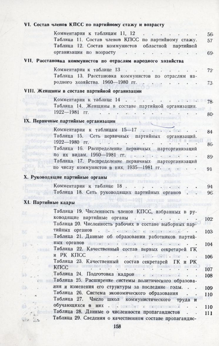 В сборнике приводятся статистические данные о Якутской областной партийной организации за 1919—1980 годы, ее численный состав, количественный и качественный рост, состав по социальному положению, образованию, национальности, партийному стажу и возрасту коммунистов, их расстановка по отраслям народного хозяйства. Показана сеть первичных партийных организаций и руководящих партийных органов и укрепление их кадрами