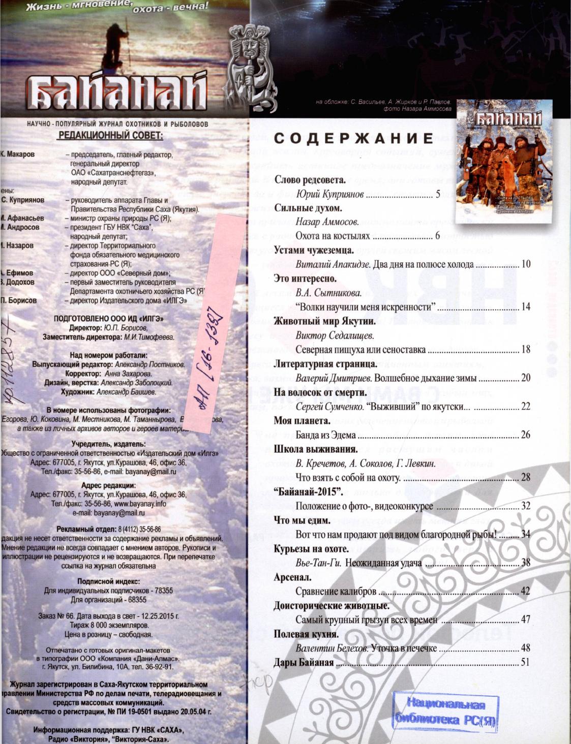 - 2. Байанай: научно-популярный журнал охотников и рыболовов: булчуттар уонна балыксыттар сурунааллара, 2016, №3 (71)