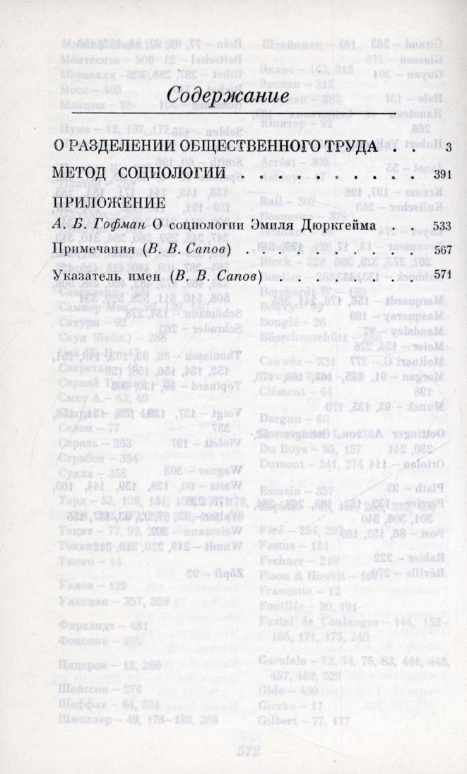 О разделении общественного труда ; Метод социологии : [перевод с французского] / Эмиль Дюркгейм ; издание подготовил А. Б. Гофман ; [примечания В. В. Сапова]. - Москва : Наука, 1991. - 572, [2] с., [1] л.