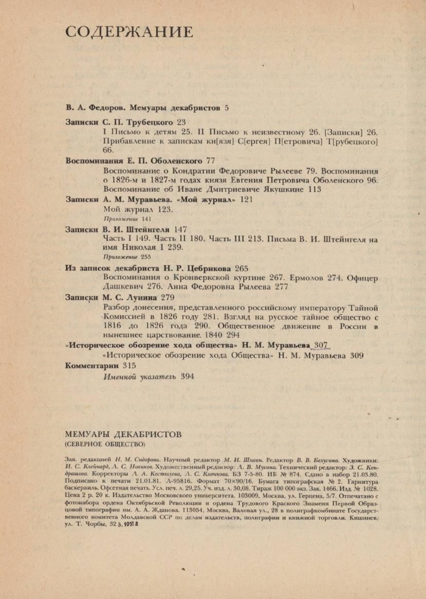 Мемуары декабристов : Северное общество / [составитель, общая редакция, вступительная статья В. А. Федорова]. - Москва : Издательство Московского университета, 1981. - 399, [1] с., [9] л. ил.