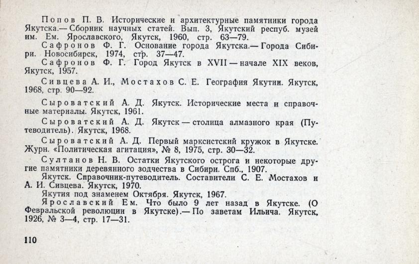 Якутск : cправочник-путеводитель / А.Д. Сыроватский, С.Е. Мостахов. - доп. и перераб. изд. - Якутск : якутское книжное издательство, 1975. - 110, [1] с.