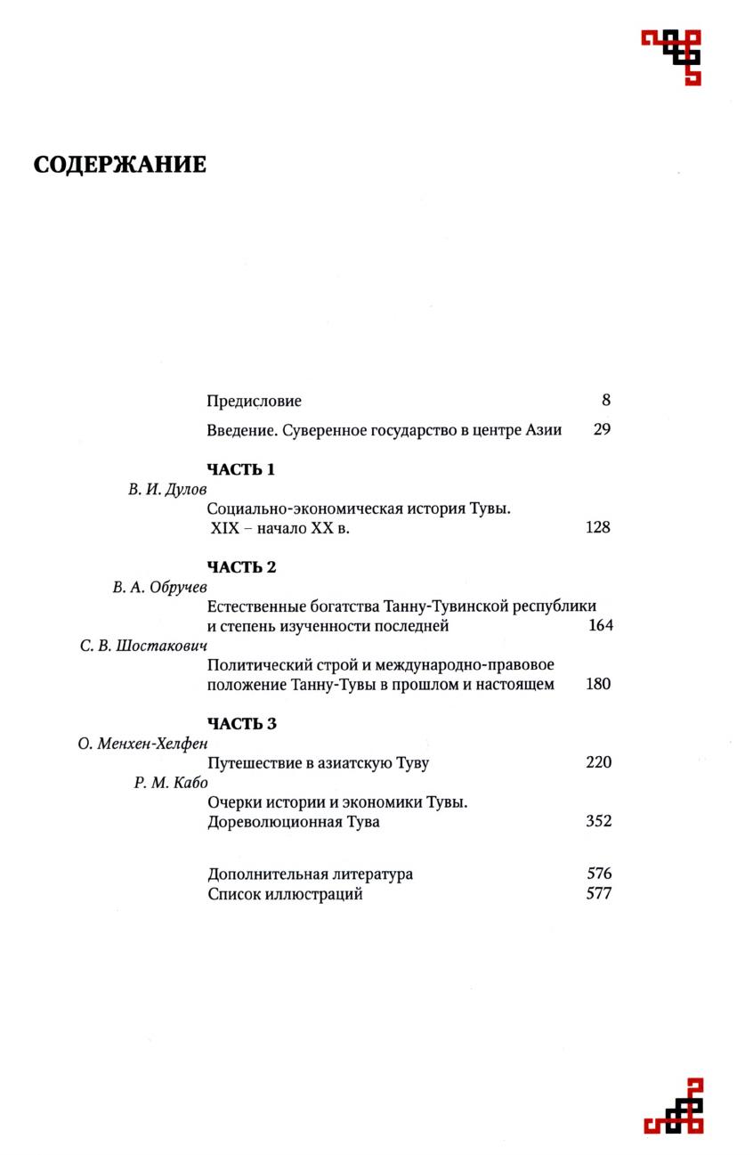 Урянхай. Тыва дептер : антология научной и просветительской мысли о древней тувинской земле и ее насельниках, об Урянхае-Танну-Туве, урянхайцах-тувинцах, о древностях Тувы (II тысячелетие до н. э. - первая половина XX в.) : в 7 томах / сост.: С. К. Шойгу ; редкол.: К. Д. Аракчаа, К. С. Шойгу. - Кызыл : Тываполиграф, 2014. - 24 см. ISBN 978-5-9267-0170-5. Т. 6: Танну-Тувинская Народная Республика (1921-1944 гг.). - 2014. - 581, [1] с., [8] л. цв. ил.