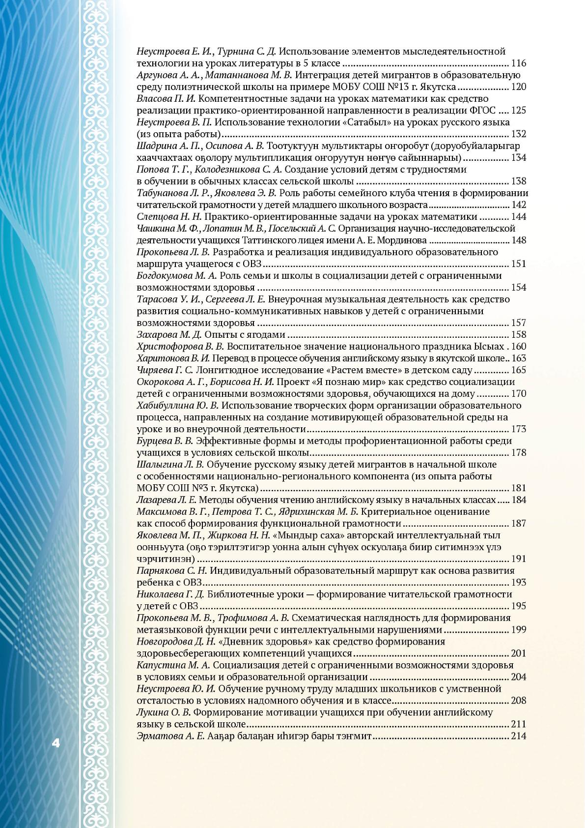 Образование: пути решения актуальных проблем : сборник научно-методических статей педагогов, участников республиканских Педагогических чтений работников образовательных организаций (учреждений) / Таттинский лицей им. А. Е. Мординова ; составитель, научный редактор С. И. Огоюкина ; ответственный редактор И. А. Сивцева ; [вступительные статьи: И. А. Сивцева, О. М. Слепцова]. - Якутск : ИЦ НБ РС (Я), 2024. - 1 файл (551 с. ).
