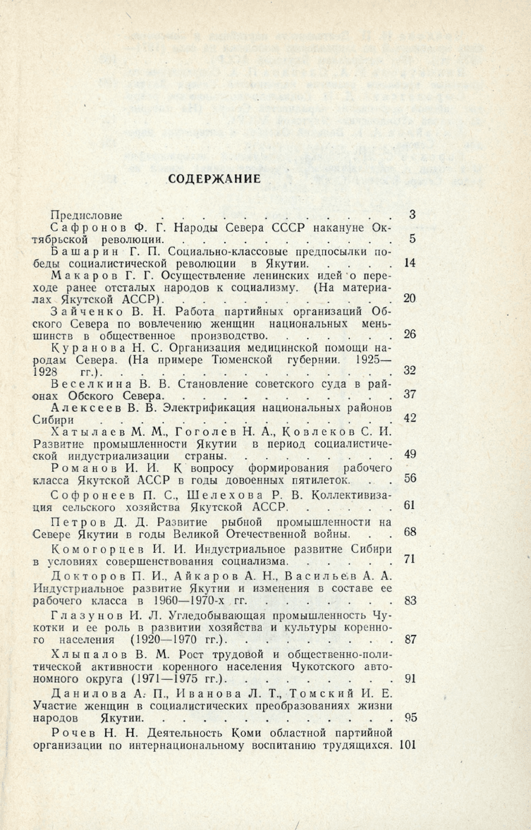 На конкретно-историческом материале в сборнике показано практическое осуществление на Севере ленинских идей о переходе ранее отсталых народов к социализму, минуя капитализм; рассмотрены коренные преобразования экономических и социальных отношений, духовной жизни аборигенного населения региона; освещены крупные успехи в его индустриальном освоении и некоторые социальные, этнические процессы на современном этапе