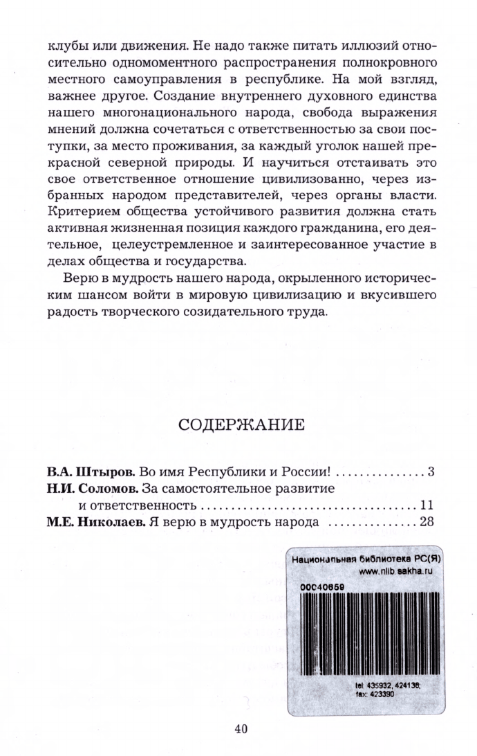 Во имя Республики и России! / Ин-т гуманитар. исслед. Акад. наук Респ. Саха (Якутия), Департамент по делам народов и федератив. отношениям Респ. Саха (Якутия). - Якутск : Сахаполиграфиздат, 2002. - 40 с. : ил.