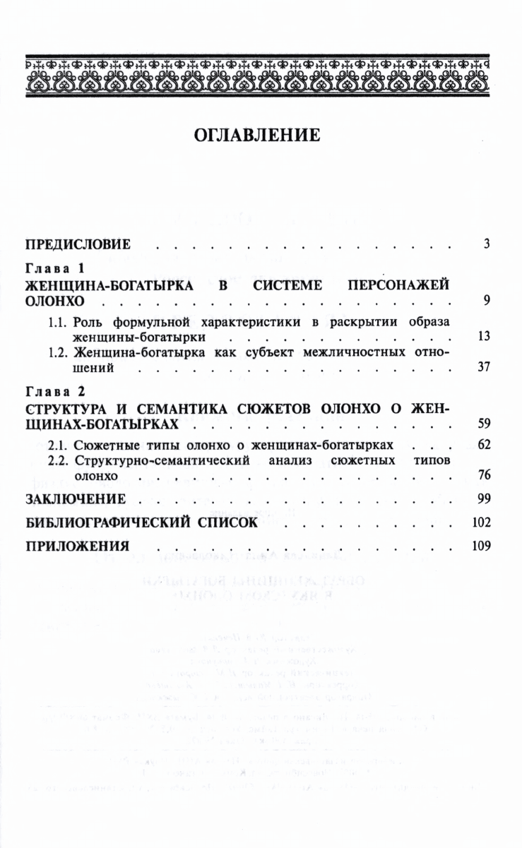 Монография посвящена комплексному изучению образа женщины-богатырки в якутском героическом эпосе олонхо. Рассматривается формульная характеристика образа женщины-богатырки (именные формулы, статус девы-воительницы в эпическом социуме, взаимодействие главной героини с другими персонажами, функции). На основе структурно-семантического анализа выявлены основные типы олонхо о женщинах-богатырках