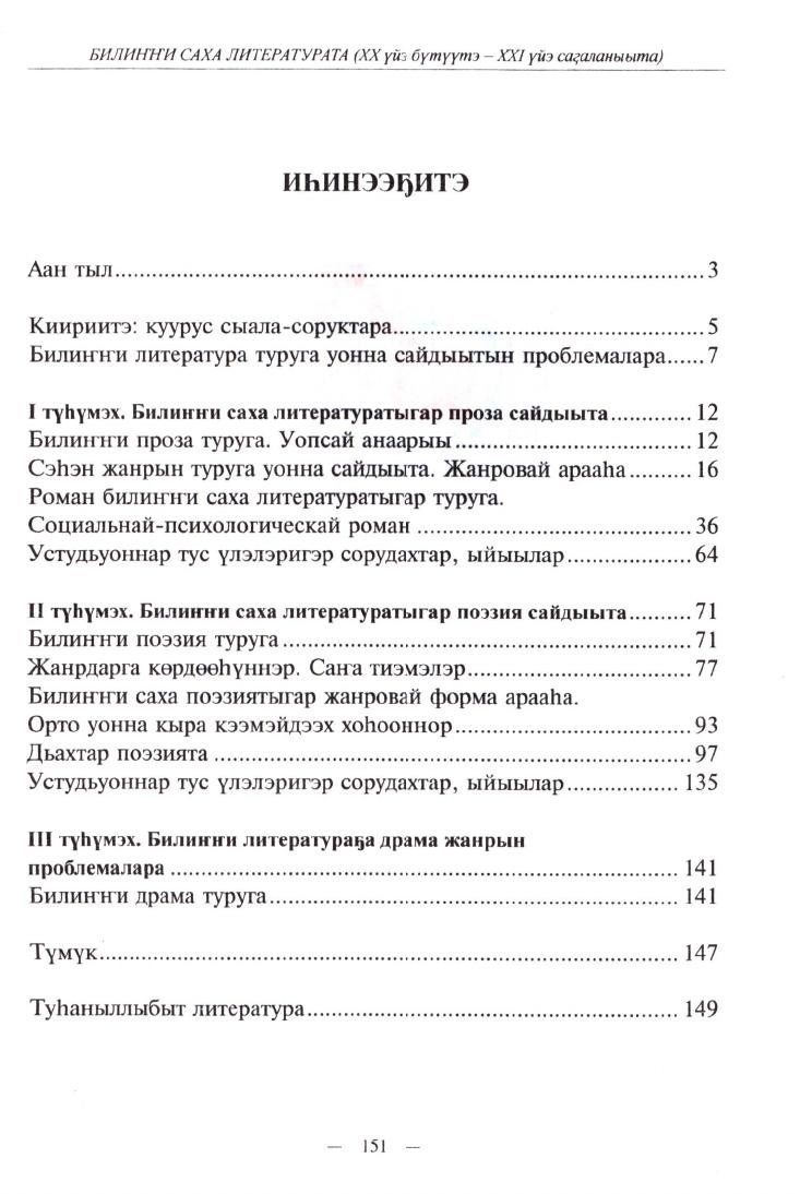 Билиҥҥи саха литературата (XX үйэ бүтүүтэ - XXI үйэ саҕаланыыта) : үэрэх кинигэтэ : для студентов высших учебных заведений по направлению 0310000 и специальности 031001 / В. Б. Окорокова, М. П. Попова ; М. К. Аммосов аатынан Хотугулуу-Илиҥҥи федеральнай университет, Хотугулуу-Илиҥҥи норуоттар тылларын уонна култуураларын института. - Дьокуускай : ХИФУ издательскай дьиэтэ, 2011. - 150 с.