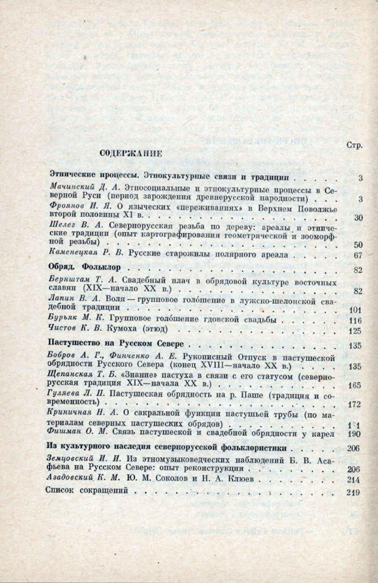 Русский Север : проблемы этнокультурной истории, этнографии, фольклористики / Академия наук СССР, Институт этнографии им. Н. Н. Миклухо-Маклая ; [ответственные редакторы: Т. А. Бернштам, К. В. Чистов]. - Ленинград : Наука, Ленинградское отделение, 1986. - 219, [1] с.