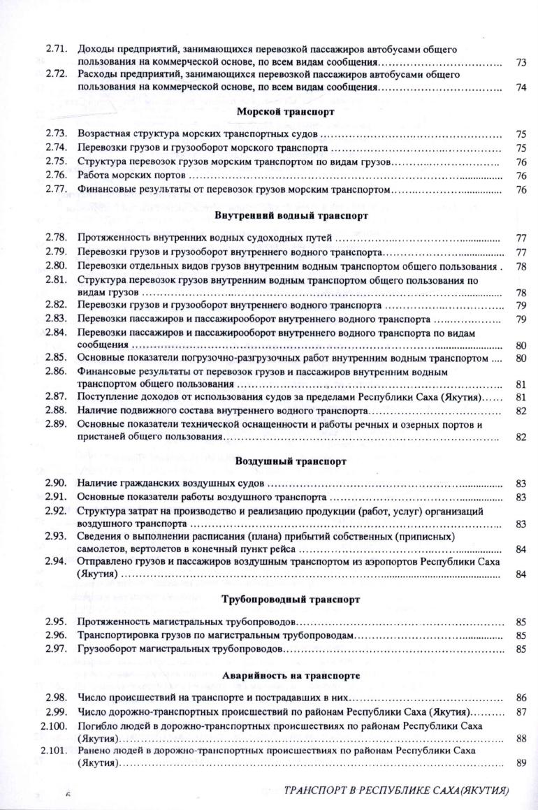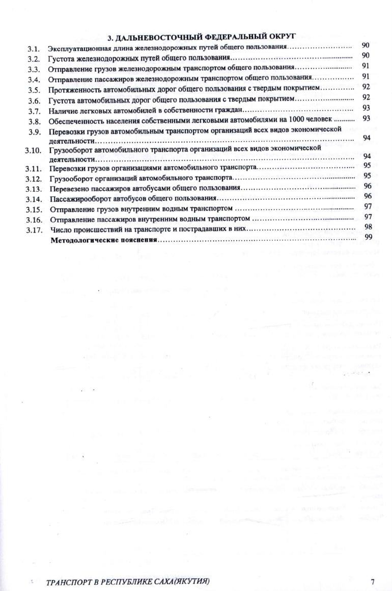 В статистическом сборнике публикуются статистические материалы, характеризующие состояние транспорта Республики Саха (Якутия) в динамике лет. Сборник подготовлен на основе данных федеральных государственных статистических наблюдений, отражающих деятельность предприятий и организаций автомобильного транспорта, дорожного хозяйства, Государственной инспекции безопасности дорожного движения министерства внутренних дел РС (Я). Помещены сведения об объемах перевозки грузов и пассажиров, инвестициях, трудовых ресурсах, наличии транспортных средств, финансах и тарифах. Отдельные показатели представлены в сравнении с показателями регионов Дальневосточного Федерального округа. Сборник предназначен для информирования руководителей местных органов исполнительной власти, финансово-экономических служб предприятий и организаций, научных, предпринимательских и банковских кругов, профессорско-преподавательского состава, аспирантов и студентов экономических вузов, других заинтересованных пользователей