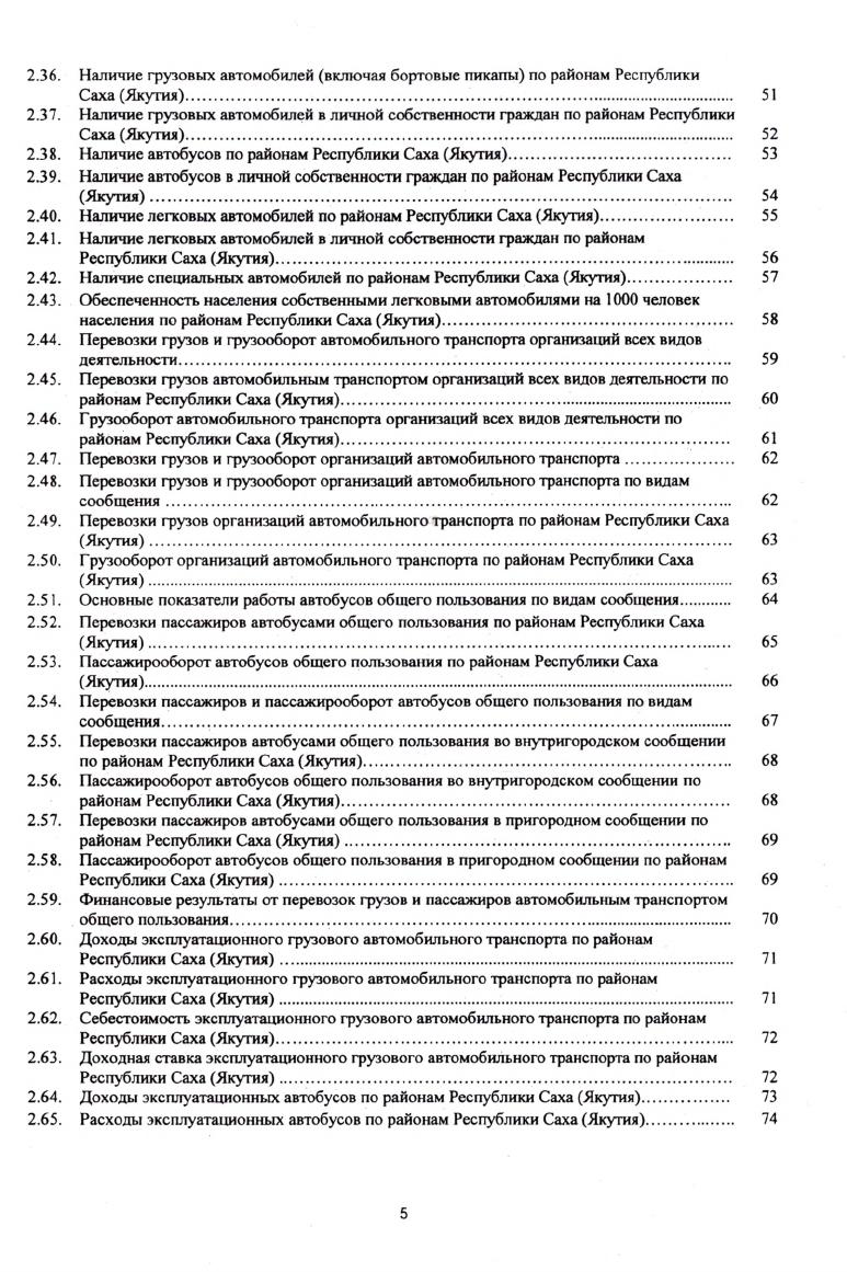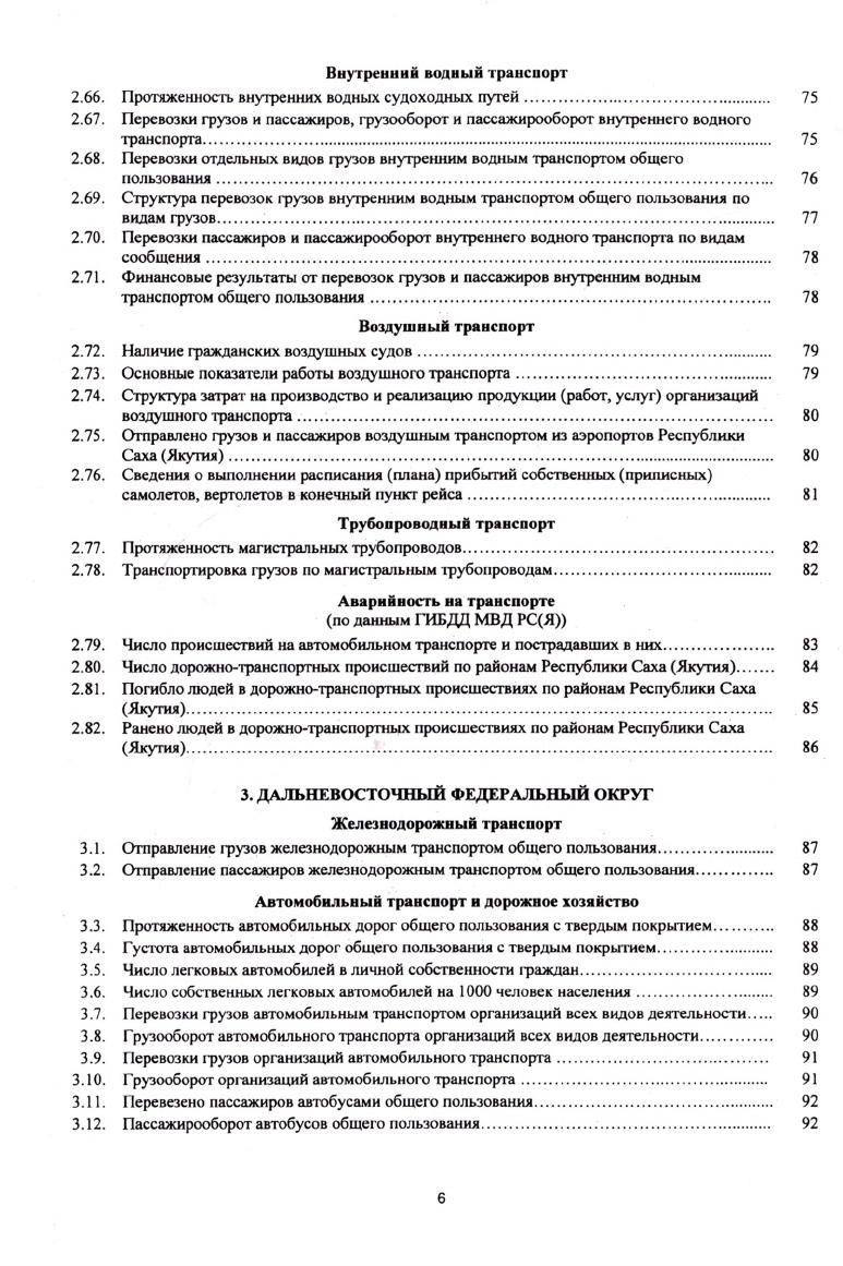 В статистическом сборнике публикуются статистические материалы, характеризующие состояние транспорта Республики Саха (Якутия) в динамике лет. Сборник подготовлен на основе данных федеральных государственных статистических наблюдений, отражающих деятельность предприятий и организаций автомобильного транспорта, дорожного хозяйства, Государственной инспекции безопасности дорожного движения министерства внутренних дел РС (Я). Помещены сведения об объемах перевозки грузов и пассажиров, инвестициях, трудовых ресурсах, наличии транспортных средств, финансах и тарифах. Отдельные показатели представлены в сравнении с показателями регионов Дальневосточного Федерального округа. Сборник предназначен для информирования руководителей местных органов исполнительной власти, финансово-экономических служб предприятий и организаций, научных, предпринимательских и банковских кругов, профессорско-преподавательского состава, аспирантов и студентов экономических вузов, других заинтересованных пользователей