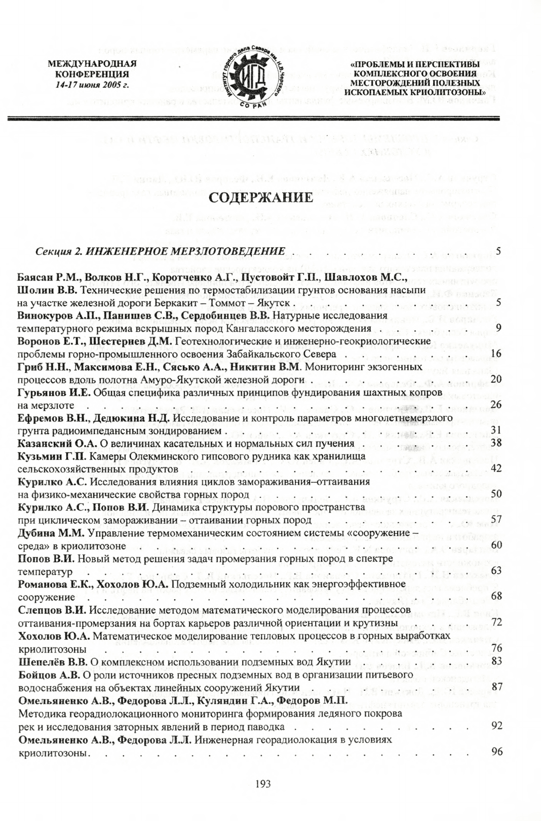 Проблемы и перспективы комплексного освоения месторождений полезных ископаемых криолитозоны = Problems and prospectives of comprehensive development of mineral resouces in permafrost : г. Якутск, 14-17 июня 2005 г. : труды Международной научно-практической конференции : [в 3-х томах] / ответственный редактор С. М. Ткач ; [оргкомитет конференции: Г. Ф. Алексеев, (председатель) и др.]. - Якутск : Изд-во Института мерзлотоведения им. П. И. Мельникова СО РАН, 2005. - 31 см. Т. 2. - 2005. - 200 с.