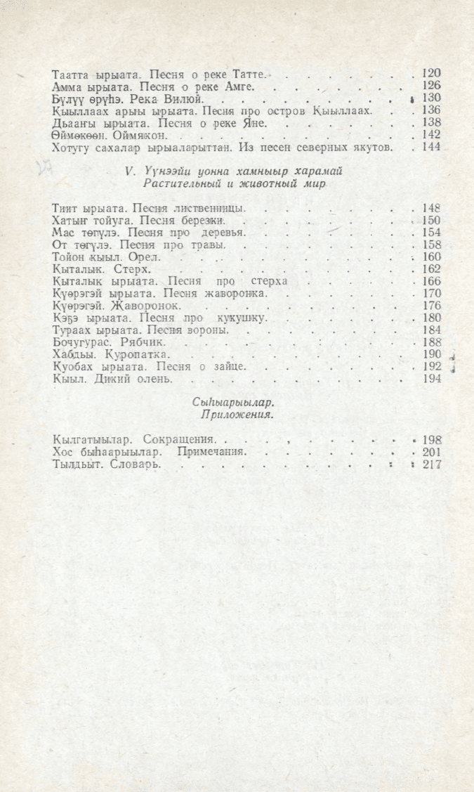 Якутские народные песни = Саха народнай ырыалара / Акад. наук СССР, Якут. фил. Сиб. отд- ния, Ин-т яз., лит. и истории. - Якутск : Якутское книжное изд-во, 1976-1983. - 21 см. Ч. 1: Песни о природе = Айылҕа туһунан ырыала