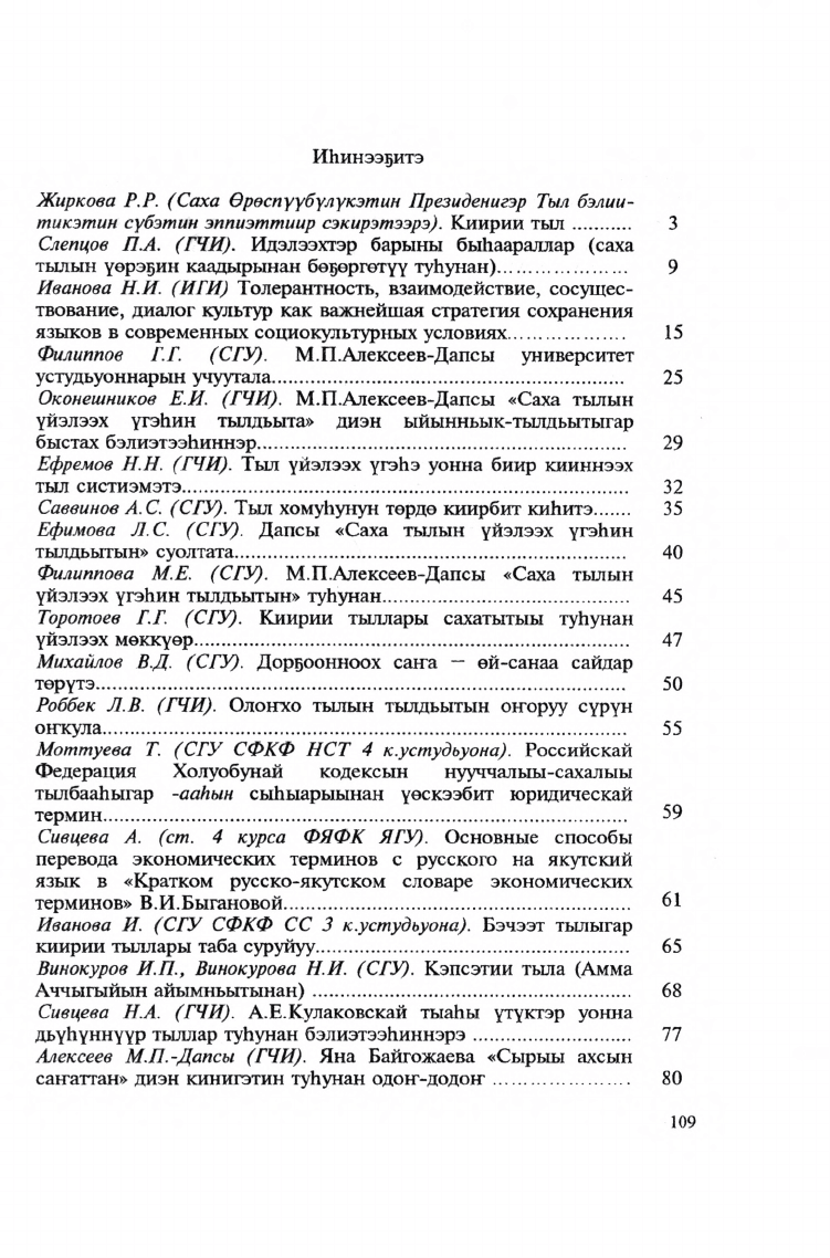 В сборник вошли статьи научного и научно-популярного характера, содержащие материалы о научной и педагогической деятельности М. П. Алексеева-Дапсы, об осмыслении его научного наследия. Также ряд публикаций посвящен функционированию якутского языка в СМИ, информационном и киберпространстве региона, культуре речи и др. прикладным аспектам якутского языкознания. Для специалистов, студентов, аспирантов и широкого круга читателей