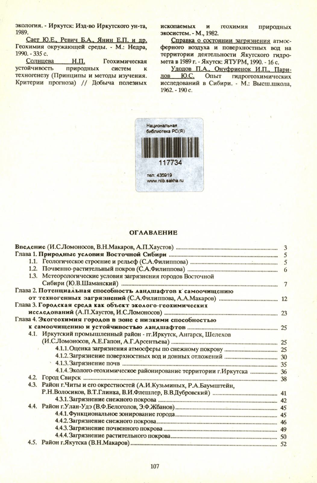 Экогеохимия городов Восточной Сибири / Российская академия наук, Сибирское отделение, Институт мерзлотоведения ; редколлегия: В. Н. Макаров, В. К. Маршинцев, В. И. Федосеева. - Якутск : [б. и.], 1993. - 108 с.