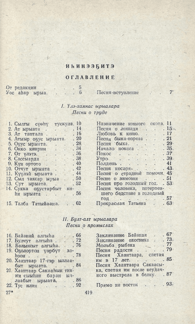 - 1. Якутские народные песни = Саха народнай ырыалара. Часть 1. Песни о природе = Айылҕа туһунан ырыала, Ч. 1, 1976
