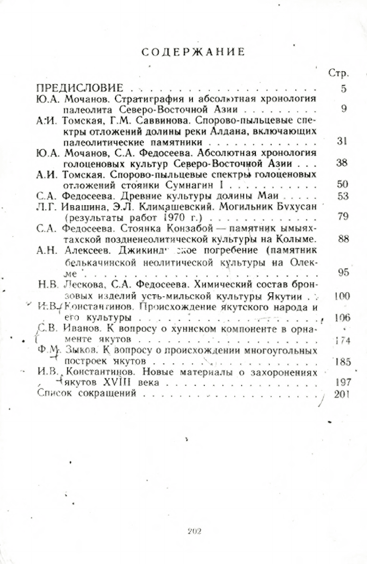Якутия и ее соседи в древности : (труды Приленской археологической экспедиции) / Акад. наук СССР, Якут. фил. Сиб. отд-ния, Ин-т яз., лит. и истории ; [отв. ред. к. ист. н. Ю. А. Мочанов]. - Якутск : Якутский филиал СО АН СССР, 1975. - 202 с.