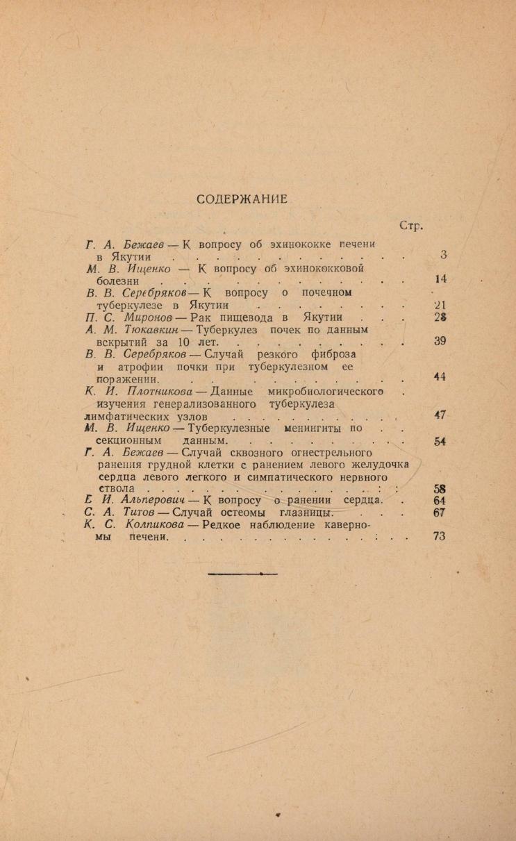 Сборник научных работ Якутской республиканской больницы / Народный комиссариат здравоохранения Якутской АССР. - Якутск : ГОСИЗДАТ ЯАССР, 1943- . - 22 см. Вып. 5. - 1957. - 73, [2] с.