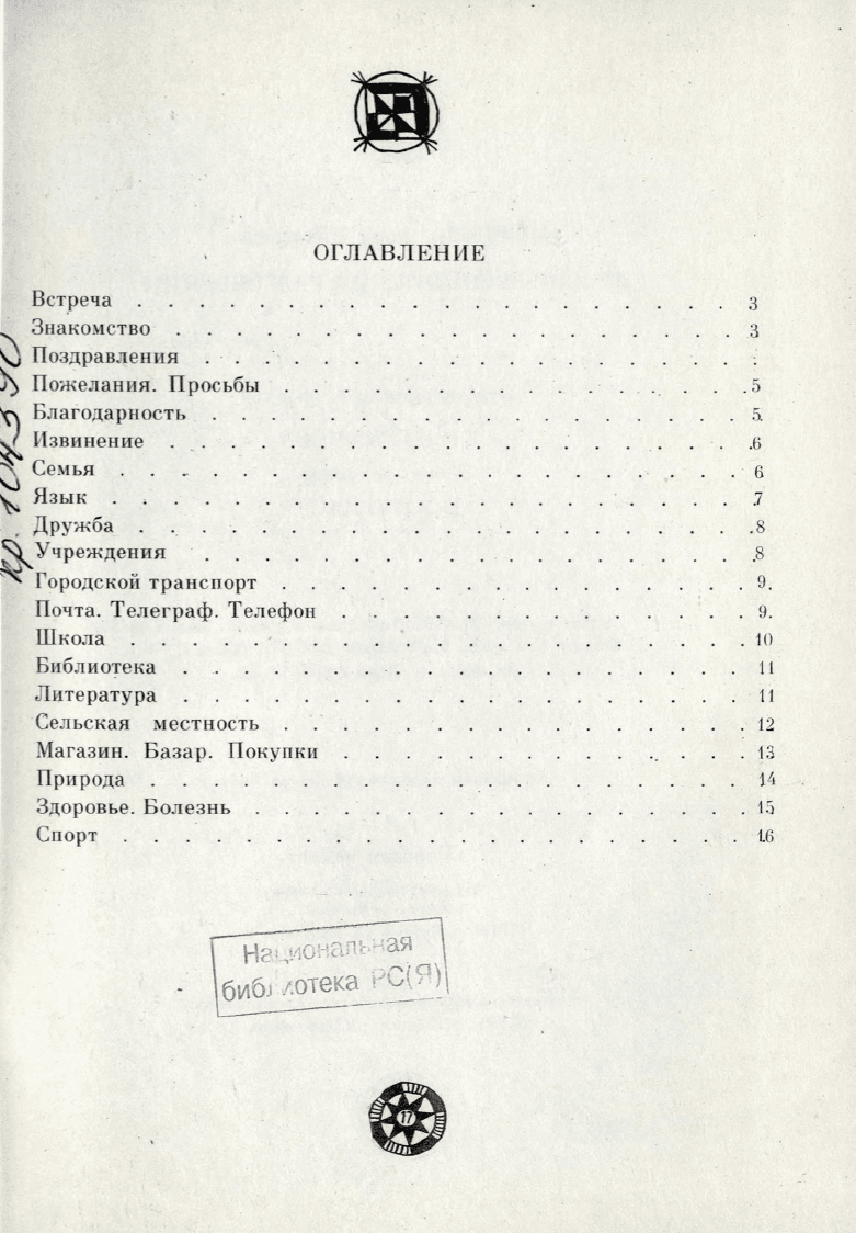 Составлен по аналогии с самоучителем "Поговорим по-якутски" (Якутск, 1987), с тем чтобы с этим разговорником могли пользоваться и те, кто слабо владеет русским языком. Различное написание слов допущено по причине существования вариантов произношения в практике общения людей