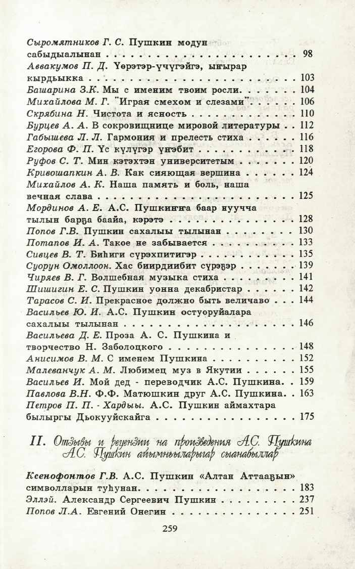 Чувства добрые я лирой пробуждал = Үтүө иэйиилэри лиирэнэн уйгуурдан : (А.С.Пушкин туһунан ыстатыйалар, этиилэр, рецензиялар) / Саха Респ. Нац. биб-та ; Хомуйан оҥордо В.Н. Павлова. - Дьокуускай, 1999. - 259 с.