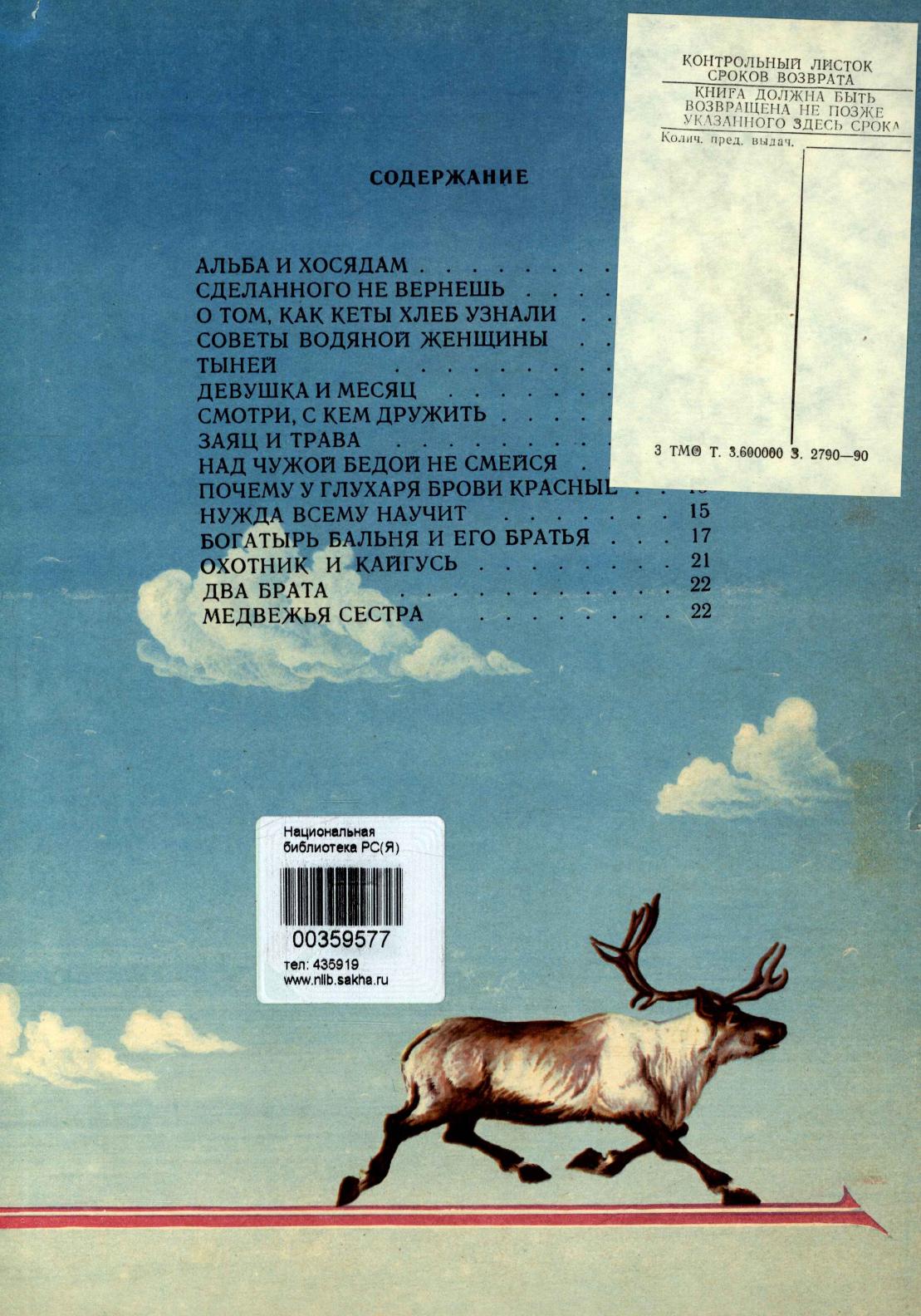 Девушка и месяц : сказки кетского народа : [для младшего школьного возраста] / составление и обработка Р. Николаев ; рисунки: В. Егоров, Л. Егорова. - Красноярск : Красноярское книжное издательство, 1982. - 25 с.