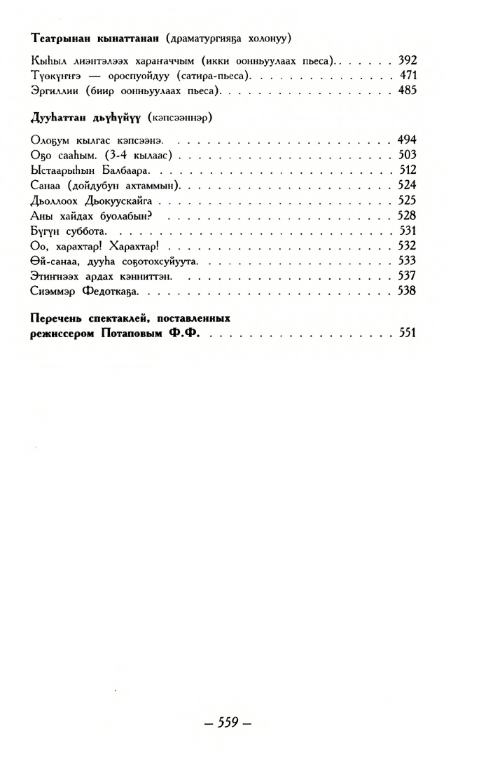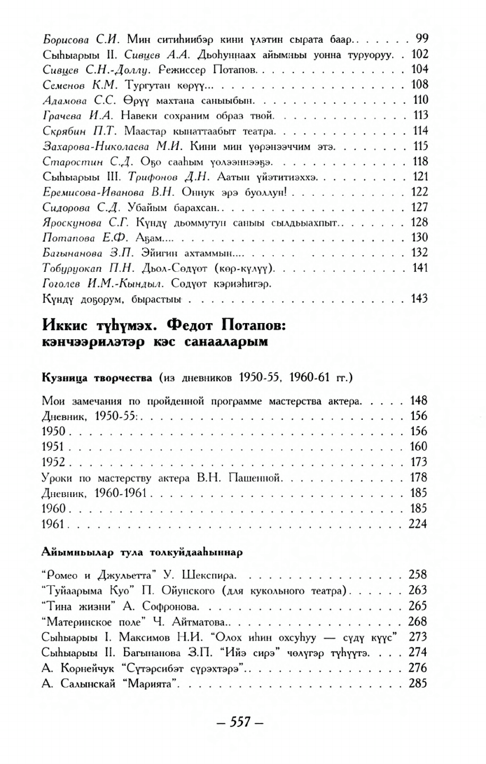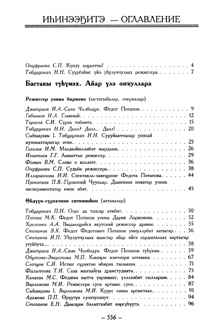 Федот Потапов: алгыстаах айар үлэм / [хомуйан оҥордулар: С. П. Онуфриева (ред.), З. П. Багынанова]. - Дьокуускай : Сахаполиграфиздат, 2001. - 559 с.