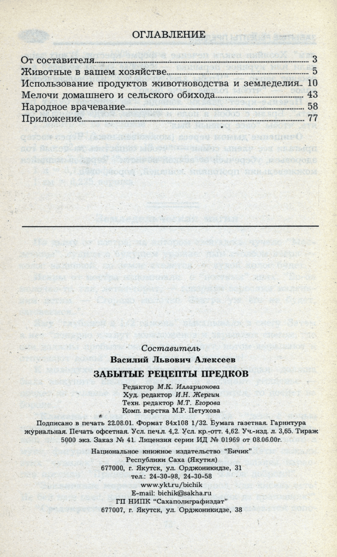 Забытые рецепты предков / [авт.-сост. В. Л. Алексеев]. - Якутск : Бичик, 2001. - 78, [2] с.