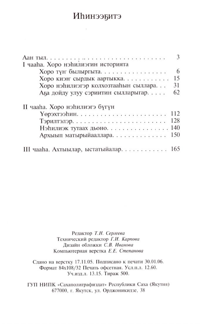 Хоро нэһилиэгэ / Саха Республикатын "Үөһээ Бүлүү улууһа (оройуона)" муниципальнай тэриллии дьаһалтата ; [хомуйан оҥордулар: Струкин Н. А.-Дьулусхан, О. Д. Федорова, Е. П. Долгаева ; редколлегия: М. М. Донской уо.д.а.]. - Дьокуускай : Сахаполиграфиздат, 2005. - 239, [1] с.