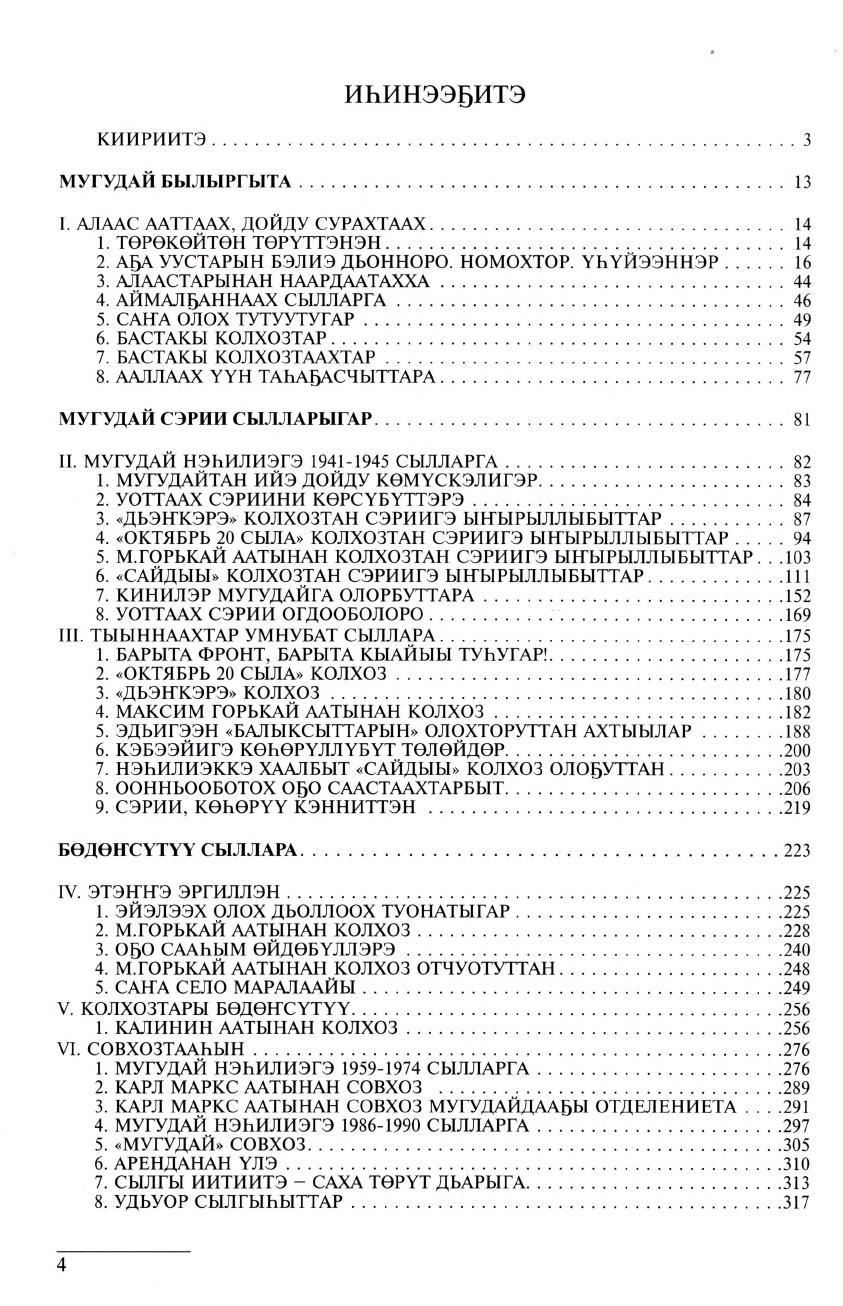 Книга посвящена истории села Мугудай Чурапчинского улуса. В книгу вошли воспоминания жителей села, проживших в годы Великой Отечественной войны, и проработавшие в колхозе в трудные дни