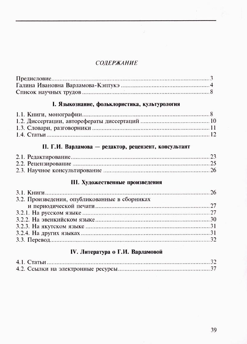 Варламова Галина Ивановна (18.01.1951-19.06.2019) : заслуженный деятель науки Республики Саха (Якутия), заслуженный ветеран СО РАН, член союза писателей СССР, доктор филологических наук : биобиблиографический указатель / Федеральный исследовательский центр "Якутский научный центр СО РАН", Институт гуманитарных исследований и проблем малочисленных народов Севера СО РАН, региональная общественная организация исследователей "Северовед" Республики Саха (Якутия) ; составитель Е. А. Васильева ; ответственный редактор М. П. Дьяконова. - 3-е изд., исправл. и доп. - Якутск : Алаас, 2021. - 39 с.