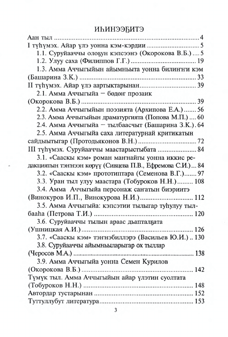 Амма Аччыгыйа - уран тыл улуу маастара : [ыстатыйалар хомуурунньуктара] / Үөрэхтээһин федер. агентствота, М. К. Аммосов аатынан Саха гос. ун-та ҮПҮ ГҮҮ , Саха филологиятын уонна культуратын фак. ; [хомуйан оҥордо филол. н. д., СГУ проф. В. Б. Окорокова]. - Дьокуускай : СГУ изд-вота, 2007. - 154 с.