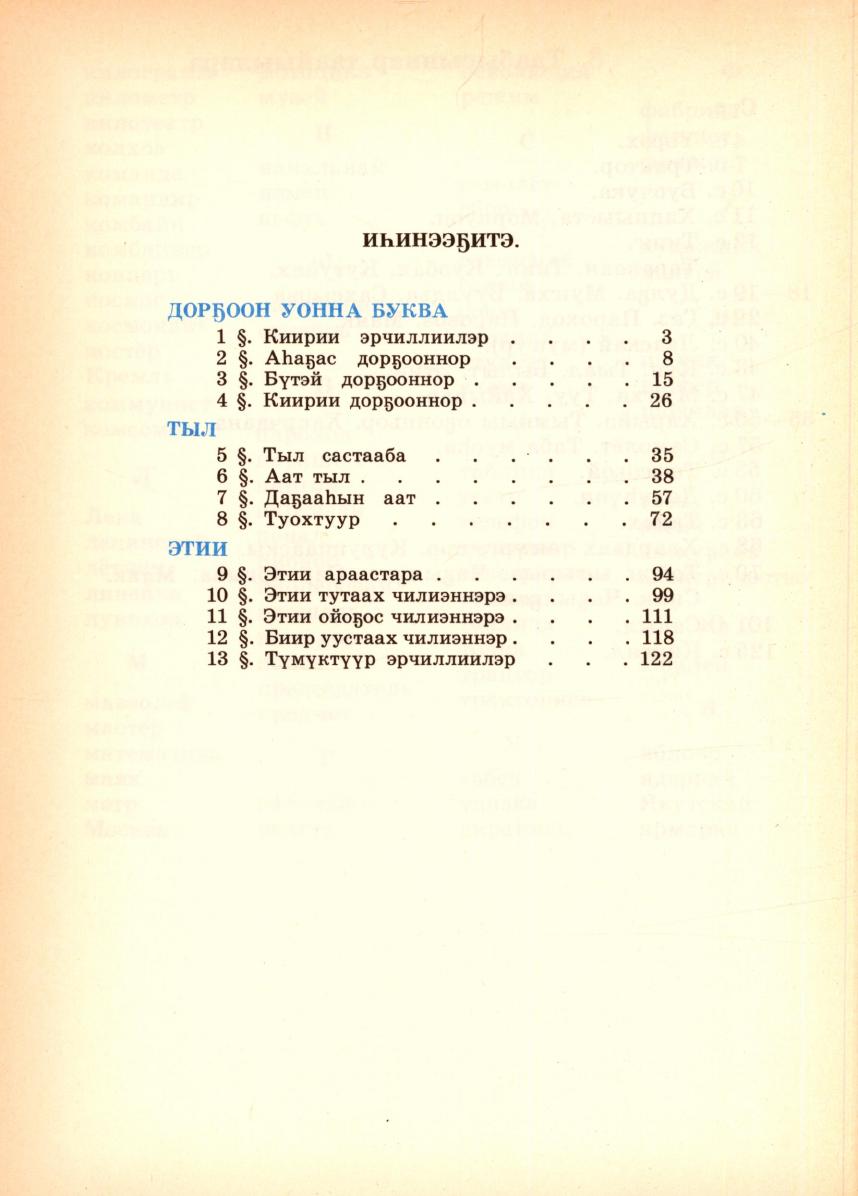 Саха тыла : фонетика, грамматика, таба суруйуу, саҥаны сайыннарыы : түөрт сыллаах саха начальнай оскуолатын үһүс кылааһыгар үөрэнэр кинигэ / И. И. Каратаев, Н. С. Попова. - 1-кы тахсыыта. - Якутскай : Саха сиринээҕи кинигэ издательствота, 1988. - 131, [3] с.