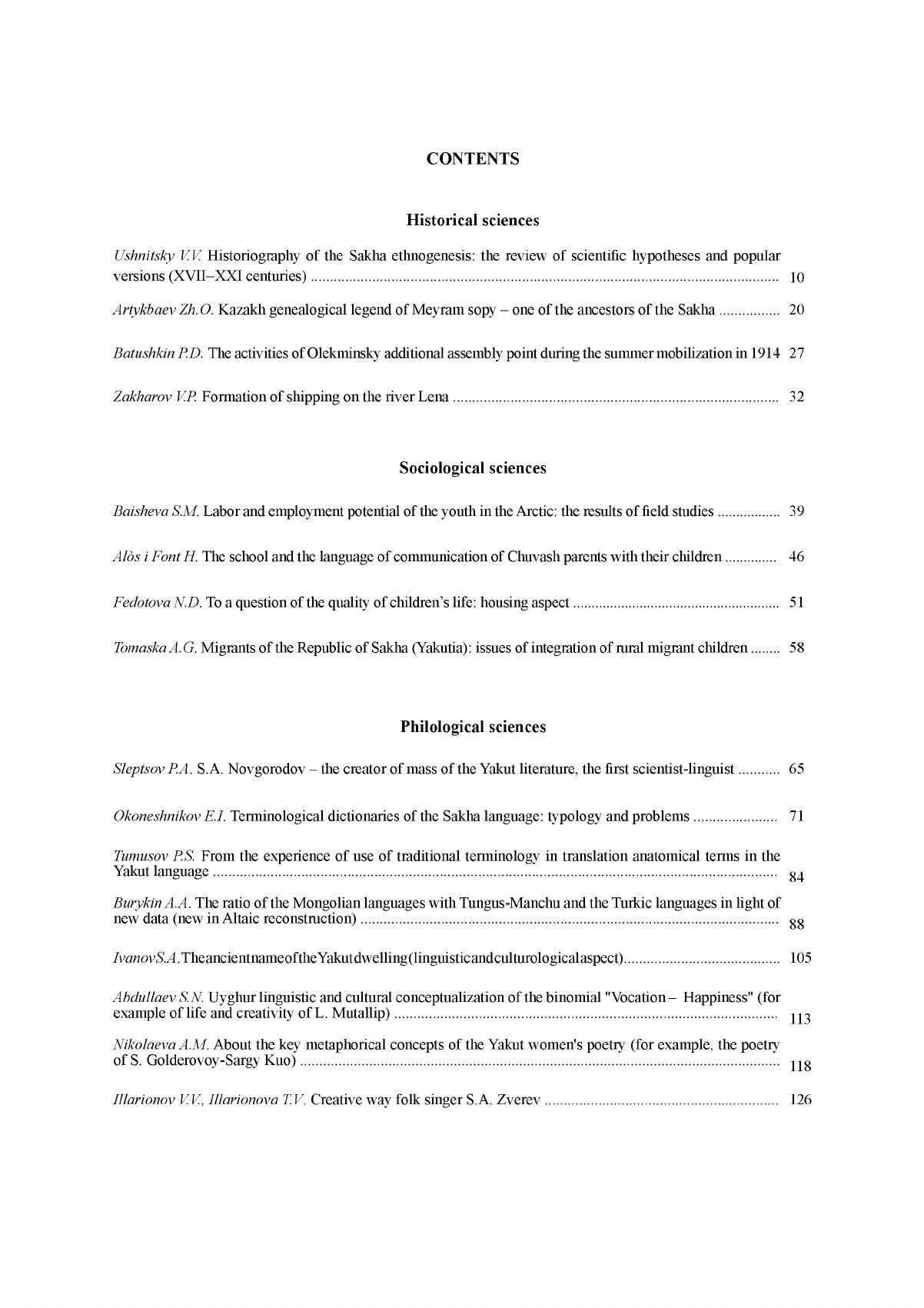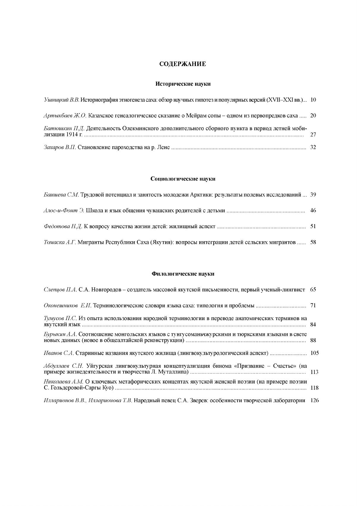 - 1. Ушницкий Василий Васильевич. Историография этногенеза саха: обзор научных гипотез и популярных версий (XVII-XXI вв.) = Historiography of the Sakha ethnogenesis: the review of scientific hypotheses and popular versions (XVII–XXI centuries)