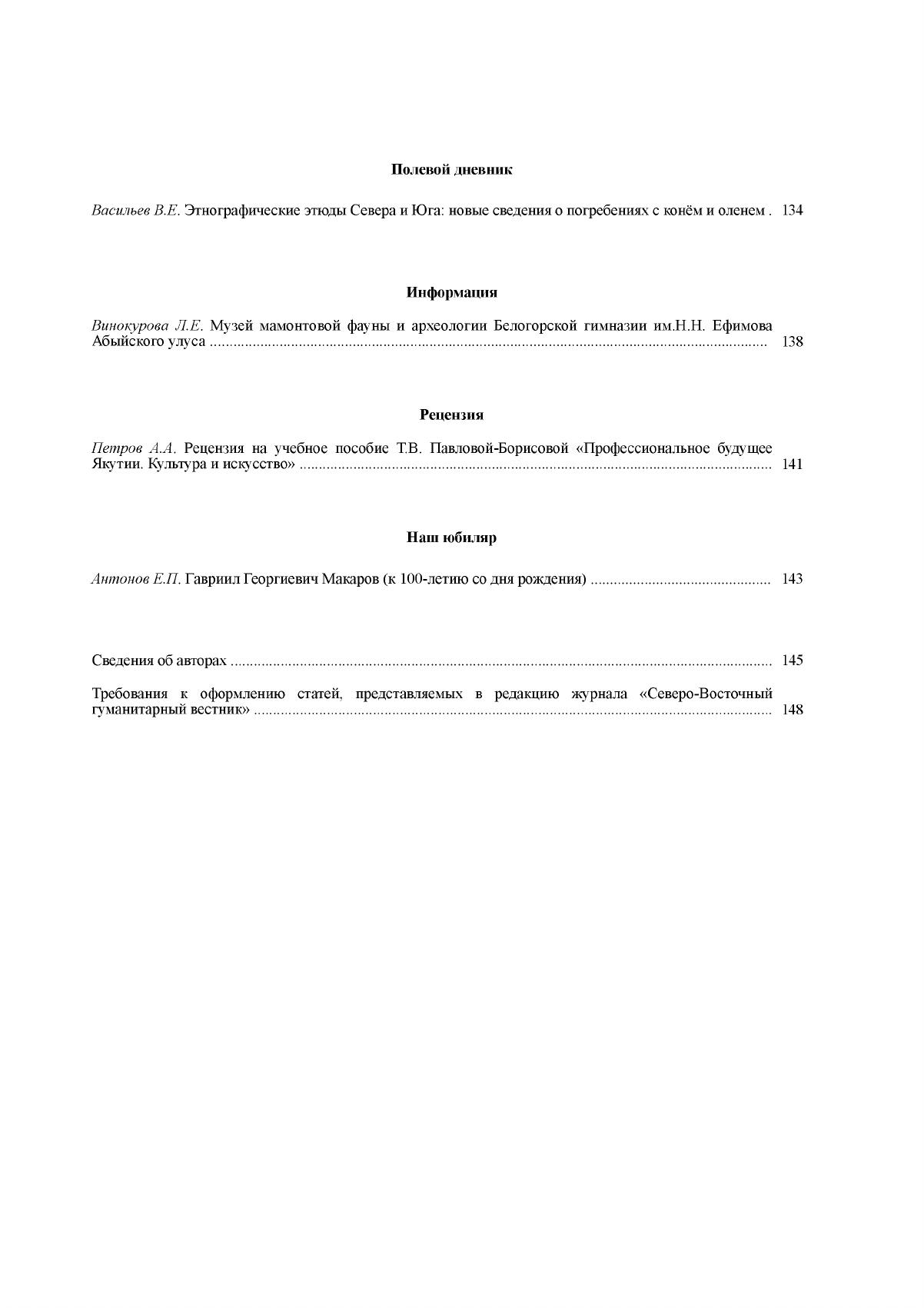 Северо-Восточный гуманитарный вестник : научный журнал / учредитель Федеральный исследовательский центр "Якутский научный центр Сибирского отделения Российской академии наук" ; редколлегия: Ефремов Н. Н. (главный редактор.) [и др.]. — Якутск : ФИЦ ЯНЦ СО РАН, 2010-. — Выходит 1 раз в квартал. — ISSN 2218-1644 (print). — 2017. — N 1 (18). — 144, [4] с.