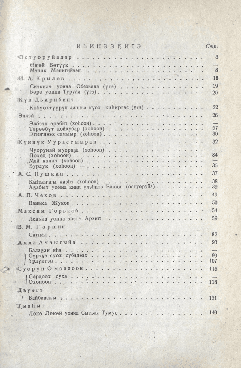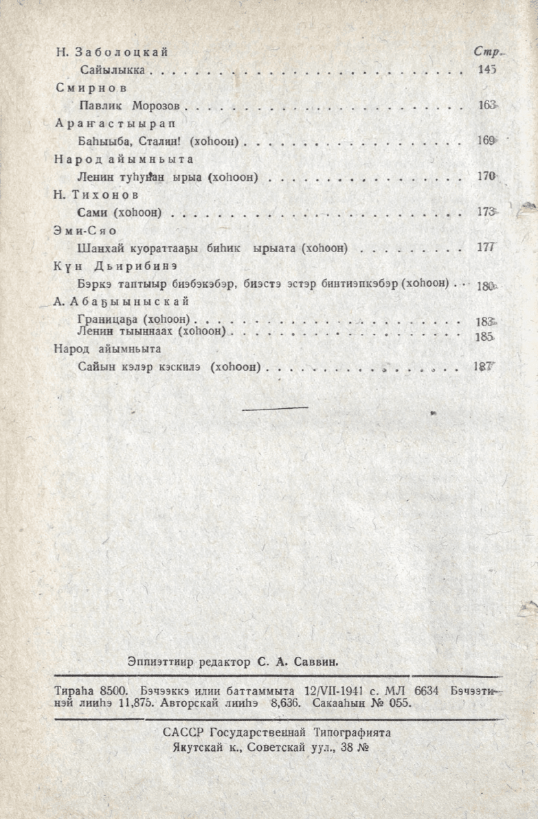 Литература хрестоматията : бастааҥҥы оскуола 4- с кылааһыгар / Д. К. Сивцев оҥорбута. - Якутскай : САССР государственнай изд-вата, 1941. - 187 с.