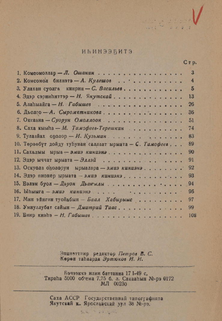 Эдэр сэрииһиттэр : (кэпсээннэр, поэмалар, хоһооннор). - Якутскай : САССР Госиздата, 1949. - 123, [2] с.