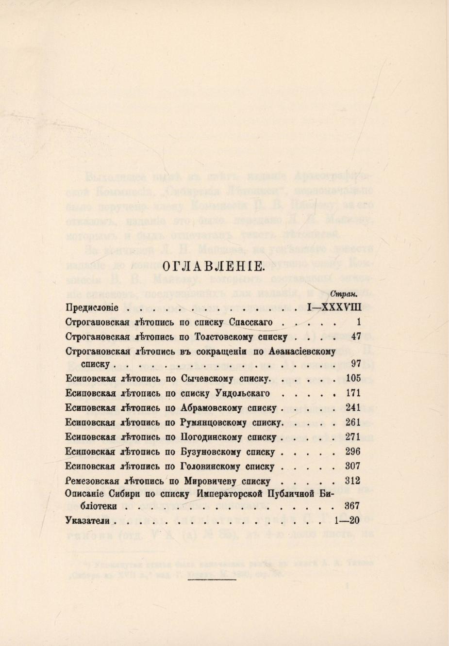 Данное издание вышло в свет в 1907 г. под эгидой Императорской археографической комиссии. Составителями издания были установлены следующие редакции сибирских летописей: Строгановская, разделяющаяся на основную, распространенную и сокращенную; Есиповская, разделяющаяся на основную, распространенную и сокращенную (пять типов сокращений); Ремезовская. Кроме этих редакций в издании помещена статья «Описание Сибири», содержащая рассказ о завоевании Сибири Ермаком и сведения о Китае