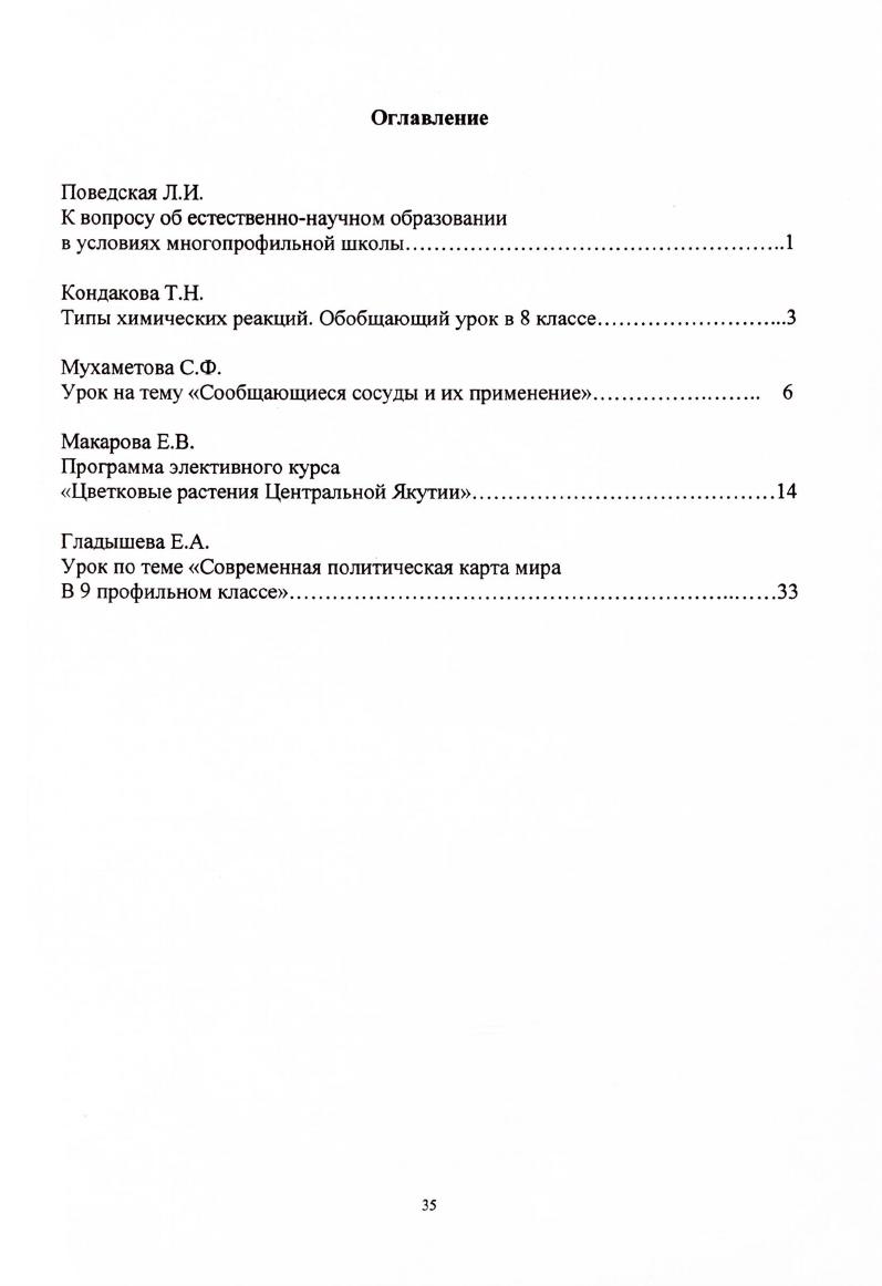 К вопросу об естественнонаучном образовании в условиях многопрофильной школы : (из опыта работы) / Министерство образования Республики Саха (Якутия), Управление образованием г. Якутска, Якутский городской лицей ; авторы-составители: Е. А. Гладышева, Т. Н. Кондакова, Е. В. Макарова [и др.]. - Якутск : [СГПА], 2006. - 1 файл (35 с.