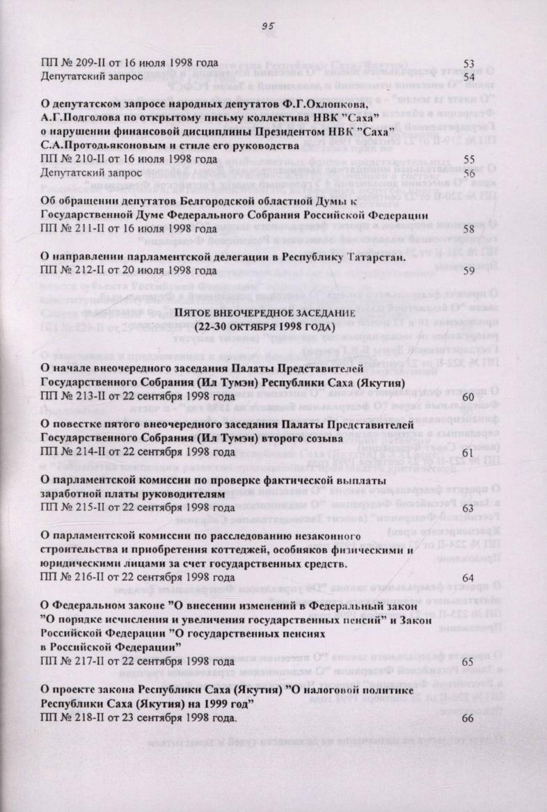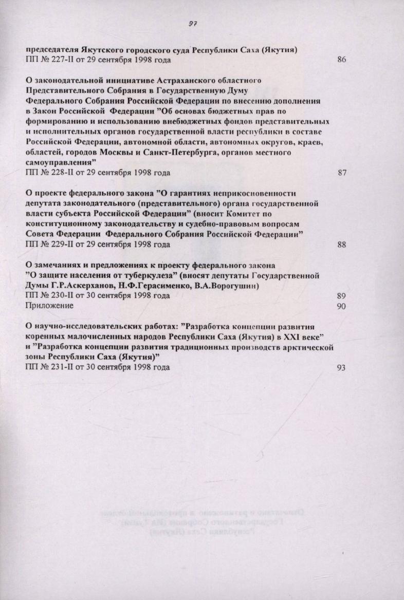 - 1. Сборник постановлений, принятых Палатой представителей Государственного Собрания (Ил Тумэн) Республики Саха (Якутия) второго созыва