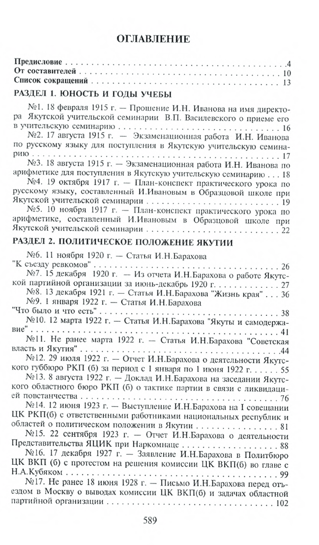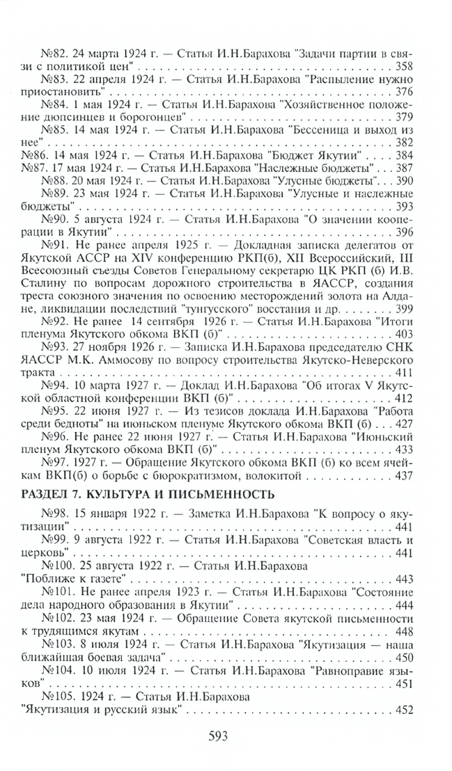 В сборник включены статьи, тексты выступлений, архивные документы, в т.ч. ранее неопубликованные, И. Н. Барахова - видного государственного и политического деятеля Якутии начала XX века, одного из основоположников государственности республики. Издание посвящено 110-летию со дня рождения И. Н. Барахова. Сборник будет полезен исследователям, краеведам и всем, кто интересуется историей Якутии