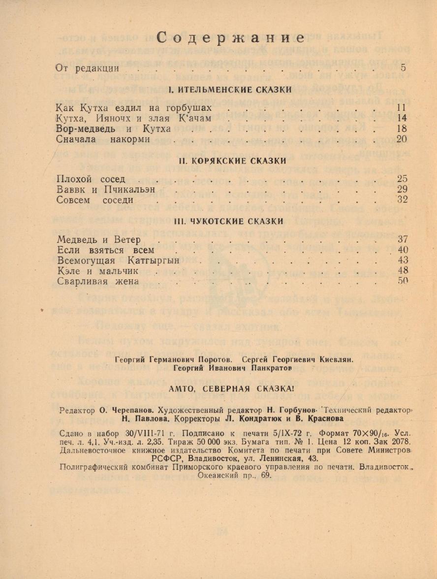 Амто, северная сказка! : [для детей / собиратели и литературная обработка Г. Г. Поротов, С. Г. Киевлян, Г. И. Панкратов ; художник В. Доронин]. - Владивосток : Дальневосточное книжное изд-во, 1972. - 56 с.