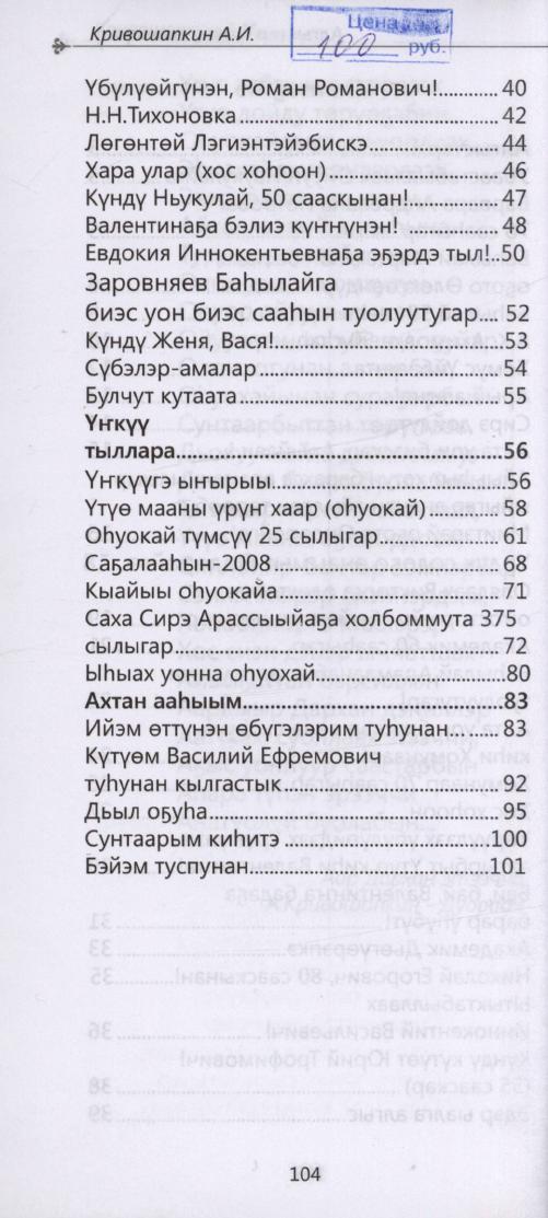 Алгыстар, үҥкүү тыллара... / Кривошапкин А. И.-Дуораан. - [Б. м. : б. и., 2022]. - 104 с.
