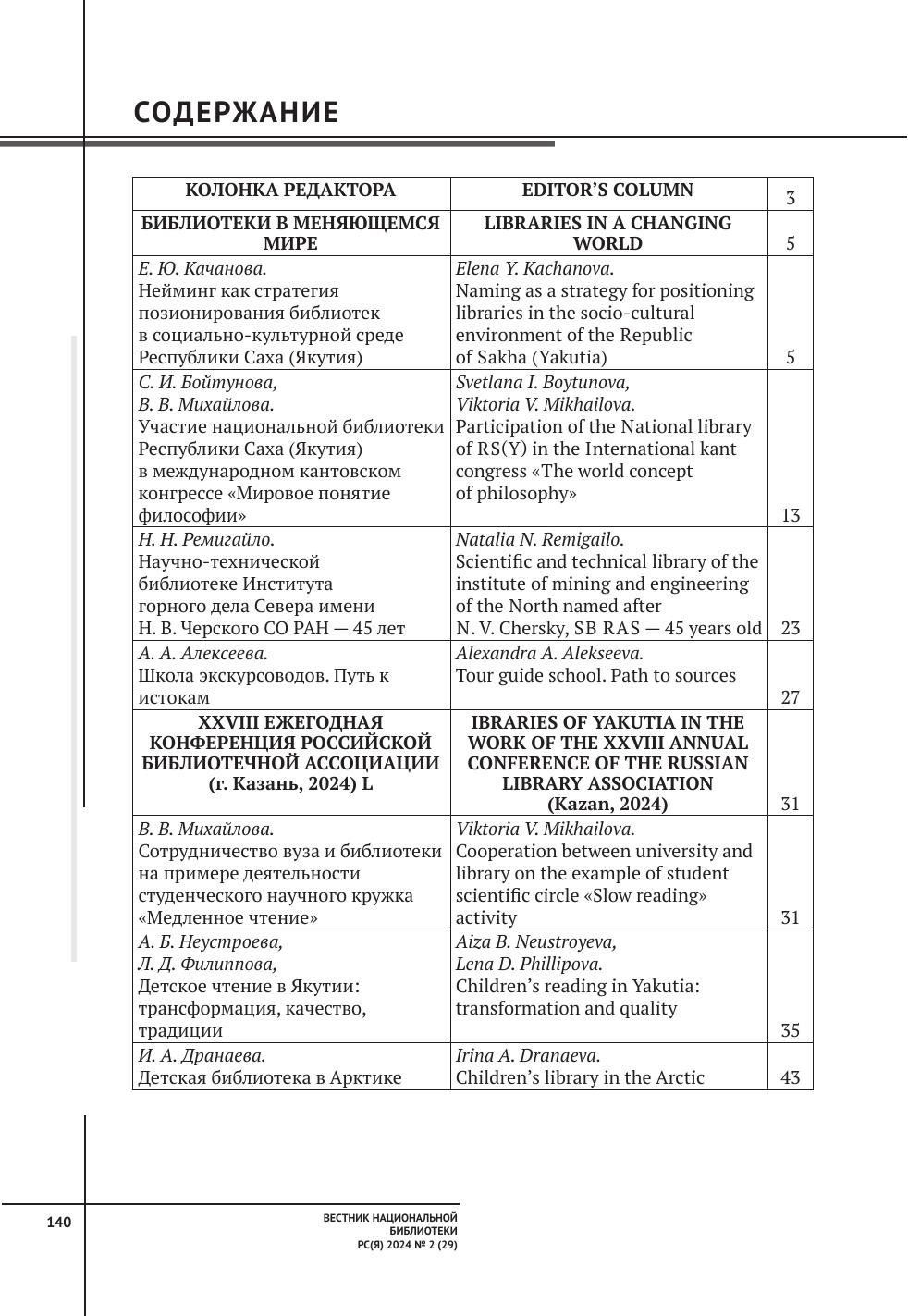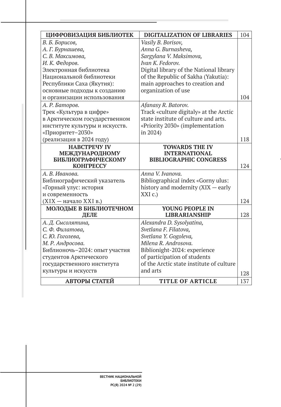 Вестник Национальной библиотеки Республики Саха (Якутия) : профессиональный журнал. - 2024, N 2 (29). - 1 файл (141, [1] с. ; 109 Мб).