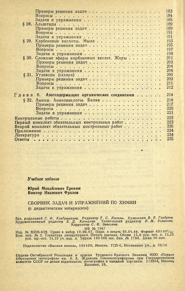 Учебное пособие для техникумов является дополнением к учебникам и учебным пособиям по химии для нехимических специальностей. Пособие содержит вопросы, упражнения и задачи для усвоения теоретических вопросов программы химии, примеры решения задач и выполнения упражнений, а также варианты обязательных контрольных и дополнительных классных письменных работ.