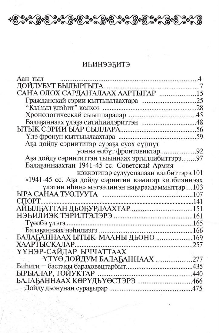 Балаҕаннаах - төрүт сирбит / Е. Е. Попова-Харабынова ; ["Үөһээ Бүлүү улууһа (оройуона)" муниципальнай оройуон, "Балаҕаннаах нэһилиэгэ" муниципальнай тэриллии]. - Дьокуускай : Компания "Дани-Алмас", 2008. - 475, [2] с.
