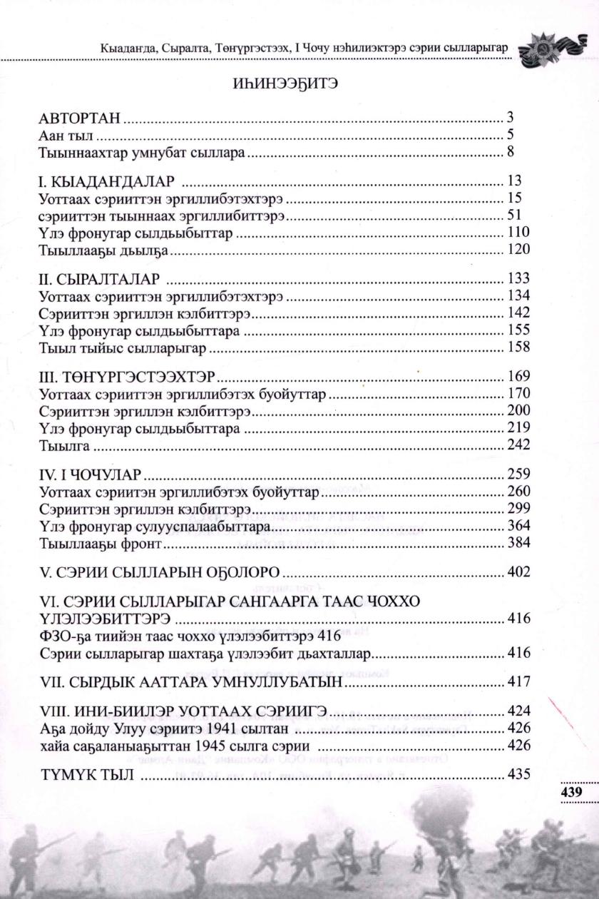 Кыадаҥда, Сыралта, Төҥүргэстээх, I Чочу нэһилиэктэрэ сэрии сылларыгар / [хомуйан оҥордо П. Г. Макарова]. - Дьокуускай : Компания "Дани-Алмас", 2016. - 439, [1] с.