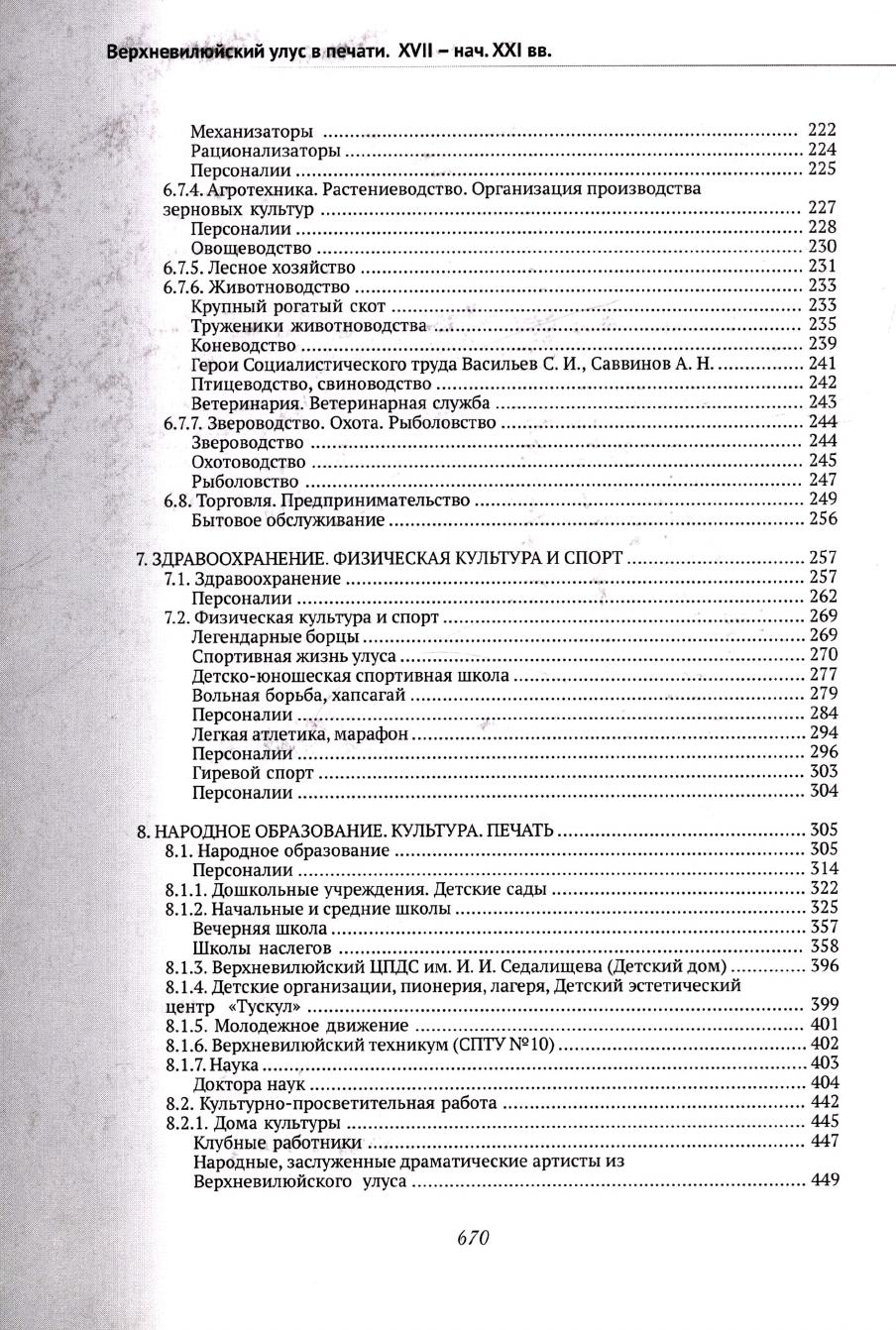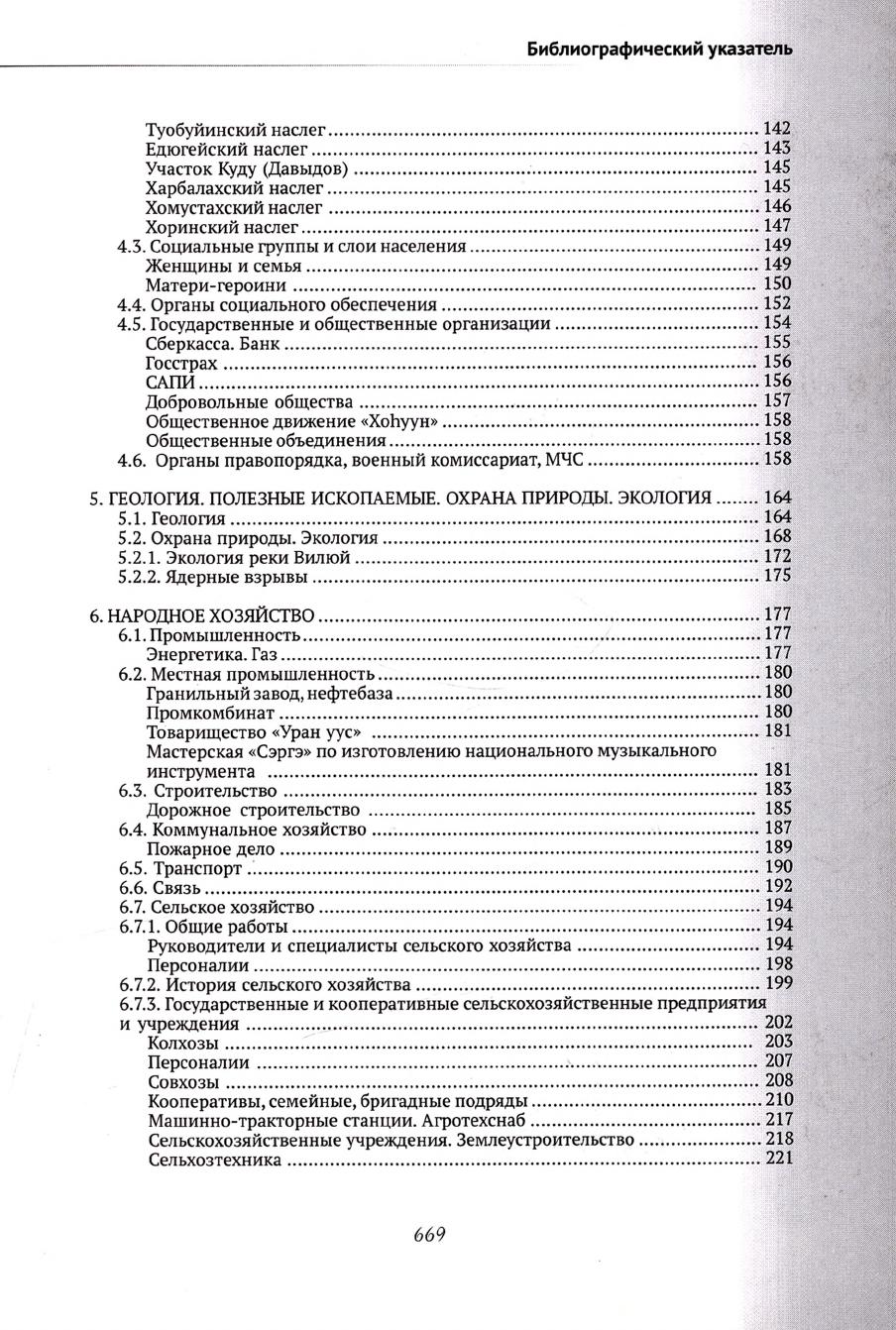 Настоящий универсальный указатель отражает наиболее полную информацию о печатной продукции со второй половины XVII в. до наших времен, включая книги, изданные в 2021 г., частично – статьи периодической печати 2022 г. Указатель включает 8683 библиографических записей на якутском и русском языках. Издание адресовано сотрудникам библиотек, работникам культуры, краеведам, студентам, специалистам и исследователям истории улуса, Вилюйского региона