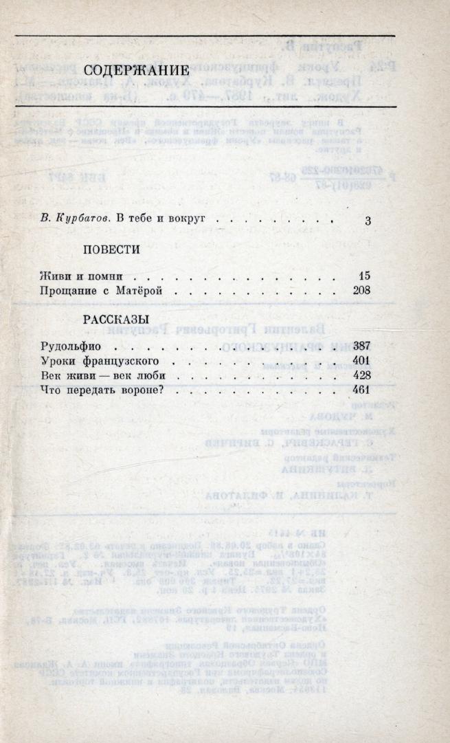 Уроки французского : повести и рассказы / Валентин Распутин ; [предисловие В. Курбатова ; художник А. Плаксин]. - Москва : Художественная литература, 1987. - 477, [2] c., [1] л. портр.